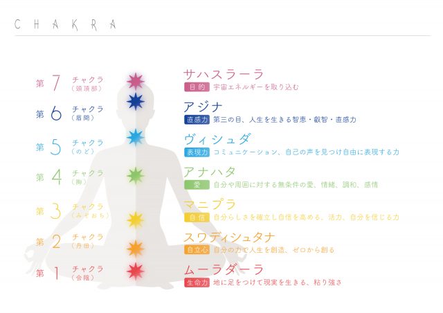 当院では、この七つのチャクラから弱いチャクラを判別し、施術すべきチャクラをわりだし、水晶を用いり強いチャクラに強化します。